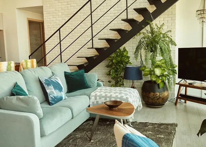 Im Apartment Incredible Views, Fast Wifi, Rooftop Pool, Artist Design stehen Gästen ein Wohnbereich und ein Balkon mit einer Klimaanlage zur Verfügung. Diese Unterkunft bietet den Gästen einen Haartrockner und Handtücher im Badezimmer.